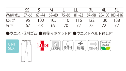 ウエスト3/4ゴム/右後ろポケット付/ウエストベルト通し付