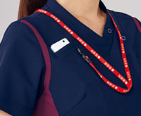 動きやすさ、収納性など機能を高めた前開きスクラブの『Smart Scrub-スマートスクラブ-』シリーズは衿の高さやポケット等、仕様にもこだわっており、ショルダーから脇にかけての切り替え配色でスマートに着こなせます。