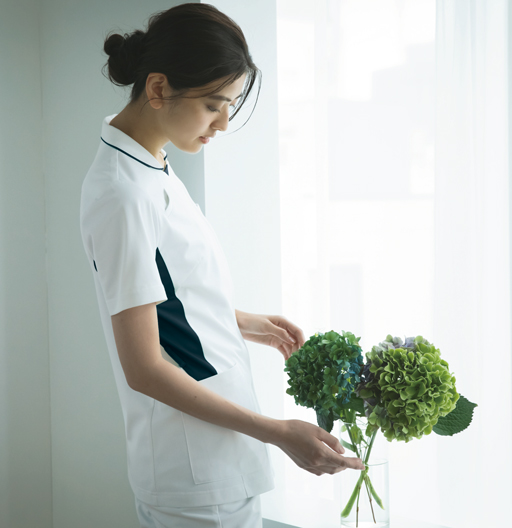 Hortensia-オルタンシア-シリーズの「Hortensia-オルタンシア」とはフランス語で紫陽花を意味します。小さな花が集まってひとつの大きな花になる紫陽花のように、一人ひとりの力をひとつにしチームの一体感を高めます。また、どの角度から見ても美しいこだわりの脇配色もポイント。現場に応える機能性を備えながら、チームの統一感も生み出すデザイン製の高いシリーズです。使用している「ソフトトリコット」は肌に接する裏面に綿を使用した、ソフトな風合いの素材です。配色部分には特殊な染色技術を用いているため、移染の心配もなく洗濯耐久性にも優れます。制菌・吸汗・防汚加工