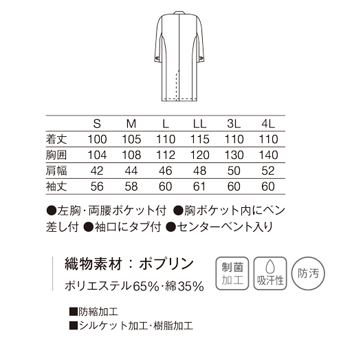 110-7メンズ診察衣S型長袖 (ホワイト/S)