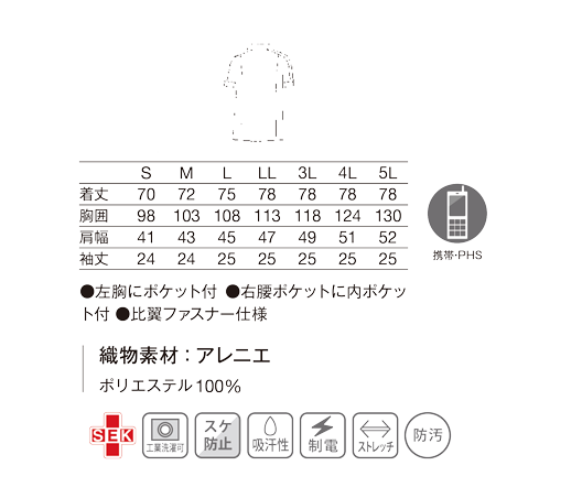 253メンズジャケット半袖 (ネイビー/S) メンズ 商品コード 253-28 S 価格 6,688円 (税込) 関連タグ #半袖 #防汚 #ストレッチ ストレッチ性抜群のソフトな生地を使用。 優しい印象のペールカラーもポイント。 【織物素材】アレニエ(ポリエステル100%) 【仕様】左胸にポケット付/右腰ポケットに内ポケット付/比翼ファスナー仕様 サイズ SMLLL3L4L5L サックス ネイビー ホワイト ミントグリーン お気に入り登録 購入点数 123456789101112131415161718 カートに入れる ボタン位置を切り替えラインと同じ位置まで下げ、より留めやすくしました。 首元から袖口にかけての切り替えラインがスポーティ。 購入点数 123456789101112131415161718 カートに入れる 商品リストに戻る