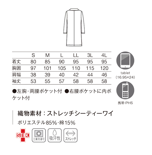 左胸・両腰ポケット付/右腰ポケットに内ポケット付