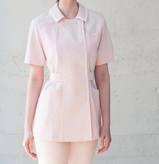 衿の縁取りで彩りを品良く表現しているやさしくナチュラルなトーンのカラー展開で美しく存在感のあるナースウェアに仕上げました。使用している「アレニエ」はポリエステル100%の織物で、快適な着心地にこだわった、新感覚のストレッチ素材です。静菌・吸汗・防汚加工で衛生的、高い防透性とソフトな肌触りが特長です。
