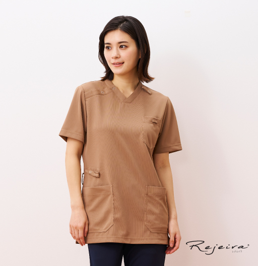 KZN714スクラブ半袖(男女兼用) (シナモンベージュ/SS)