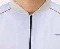 着脱しやすいハーフジップ。立ち衿により、ストラップが直接首