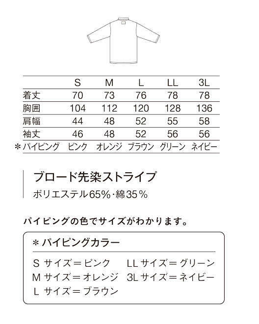 胸元にサイズ管理なパイピング入り。ロングセラーの患者衣。