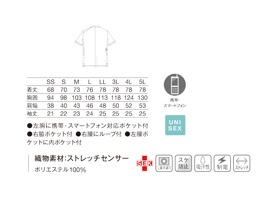 • 左胸に携帯・スマートフォン対応ポケット付。