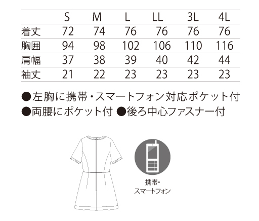 左胸に携帯・スマートフォン対応ポケット付/両腰にポケット付/後ろ中心ファスナー付
