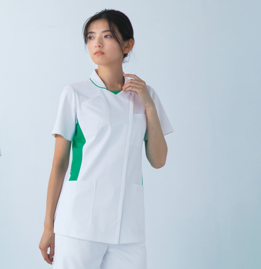 Hortensia-オルタンシア-シリーズの「Hortensia-オルタンシア」とはフランス語で紫陽花を意味します。小さな花が集まってひとつの大きな花になる紫陽花のように、一人ひとりの力をひとつにしチームの一体感を高めます。また、どの角度から見ても美しいこだわりの脇配色もポイント。現場に応える機能性を備えながら、チームの統一感も生み出すデザイン製の高いシリーズです。使用している「ソフトトリコット」は肌に接する裏面に綿を使用した、ソフトな風合いの素材です。配色部分には特殊な染色技術を用いているため、移染の心配もなく洗濯耐久性にも優れます。制菌・吸汗・防汚加工