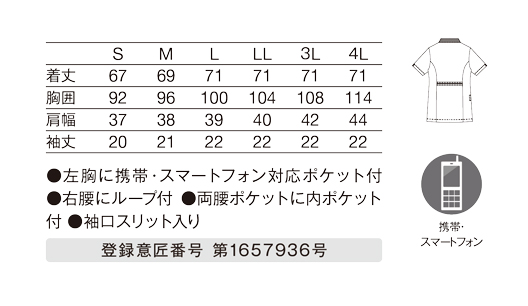 • 左胸に携帯・スマートフォン対応ポケット付。