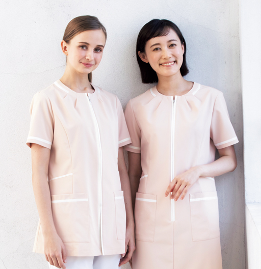 動きやすさ、収納性など機能を高めた前開きスクラブの『Smart Scrub-スマートスクラブ-』に知的で上品さを加えたエレガントシリーズです。