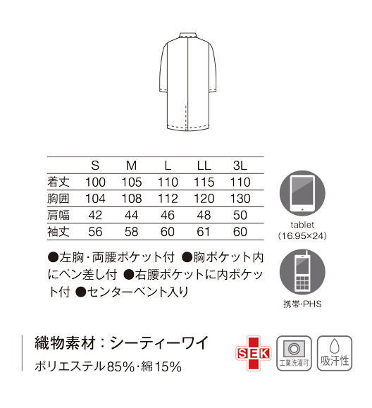定評のあるスタンダード診察衣シングル型。