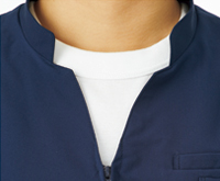 左胸にポケット付。付属のループは、名札などの取り付け場所として最適。きざみ衿をあしらい、上品さを演出。 -