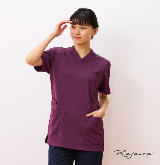 KZN714スクラブ半袖(男女兼用) (ボルドー/SS)