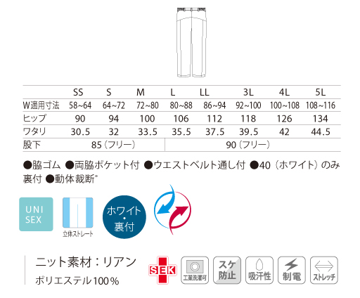 ウエストベルト通し付、脇ゴム仕様。 -