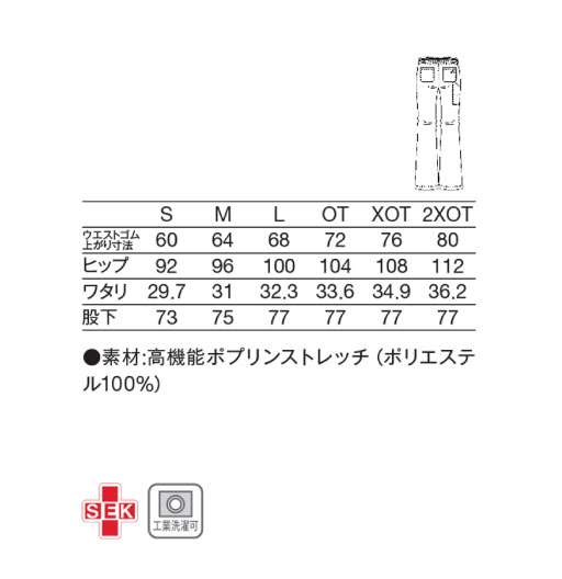 ウエストはロゴ入りの総ゴム仕上げで、脱ぎはきもしやすく、楽な着心地/両脇ポケット、両後ろポケット付 /右腿後ろにはペン差しポケット、ミニポケット付