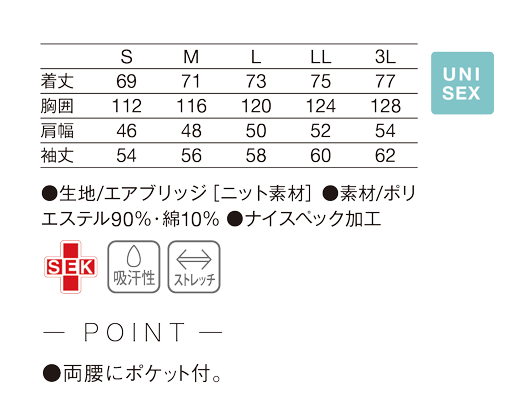 241ケアジャケット (ネイビー/S) 商品コード 241-31 S 価格 8,976円 (税込) 関連タグ #男女兼用 #制菌加工 #ストレッチ 汗をかいてもサラッとした着心地の快適なケアジャケット 【ニット素材】 エアブリッジ(ポリエステル90%・綿10%) /ナイスペック加工 【仕様】 両腰にポケット付 サイズ SMLLL3L ネイビー お気に入り登録 購入点数 1234567891011121314151617181920 カートに入れる 胸元のデザインライン。 両腰にポケット付。 衿元はファスナー使い。 購入点数 1234567891011121314151617181920 カートに入れる 商品リストに戻る