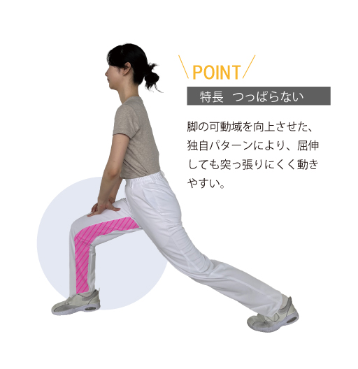 使用している「リアン」はポリエステル100%、裏面は点タッチで肌離れがよく軽量、どんな動きにも対応する伸縮性に富むニット素材です。