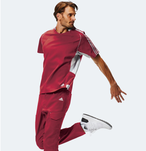 現場のハードワークもアクティブにこなすシンプルなデザインの中に、しなやかな強さを表現したメンズスクラブ。