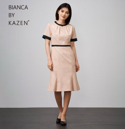 KZN325ワンピース半袖 (シャンパーニュ×ブラック/M)