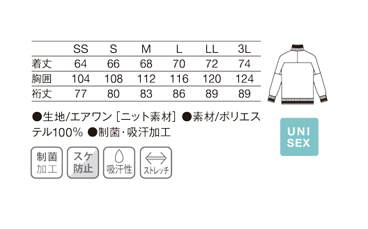 エアワン(ポリエステル100% )/制菌・吸汗加工
