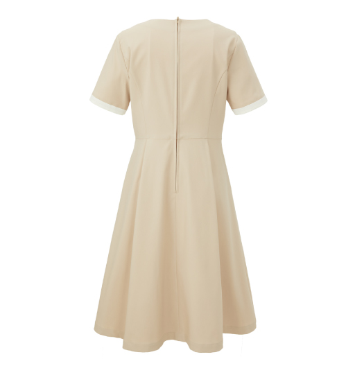 華やかに広がるフレアと、美しいVネック。柔和なカラーに親しみを込めながら、モダンなディテールに惹かれるタイムレスなデザイン。