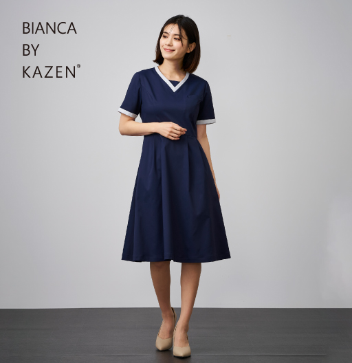 KZN326ワンピース半袖 (ネイビー×シルバー/S)