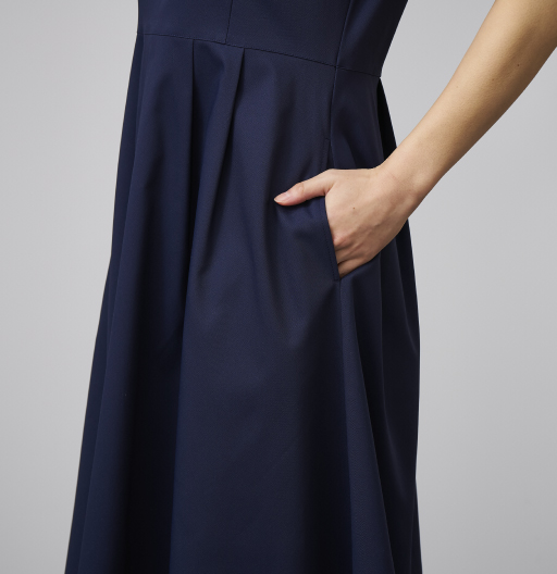 ウエストから裾にかけたフレアタックでどの角度からも美しい。