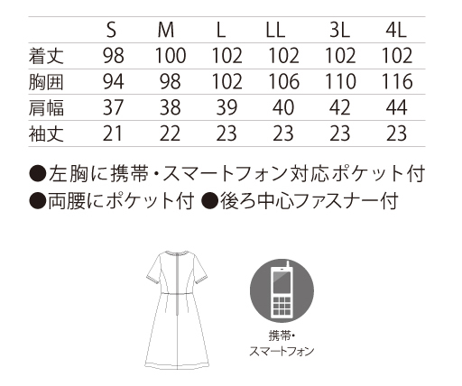 左胸に携帯・スマートフォン対応ポケット付/両腰にポケット付/後ろ中心ファスナー付
