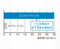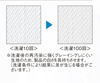 素材開発で誕生した新素材「コンフォートラックス」は洗濯後の再汚染につよく、グレーイングしにくい生地のため白さが長持ちします。 -