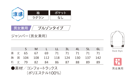 ブルゾンタイプ/袖:ラグラン/ポケットなし/ファスナー/インナーカバー付/袖口体毛防止加工袖/袖口フライス
